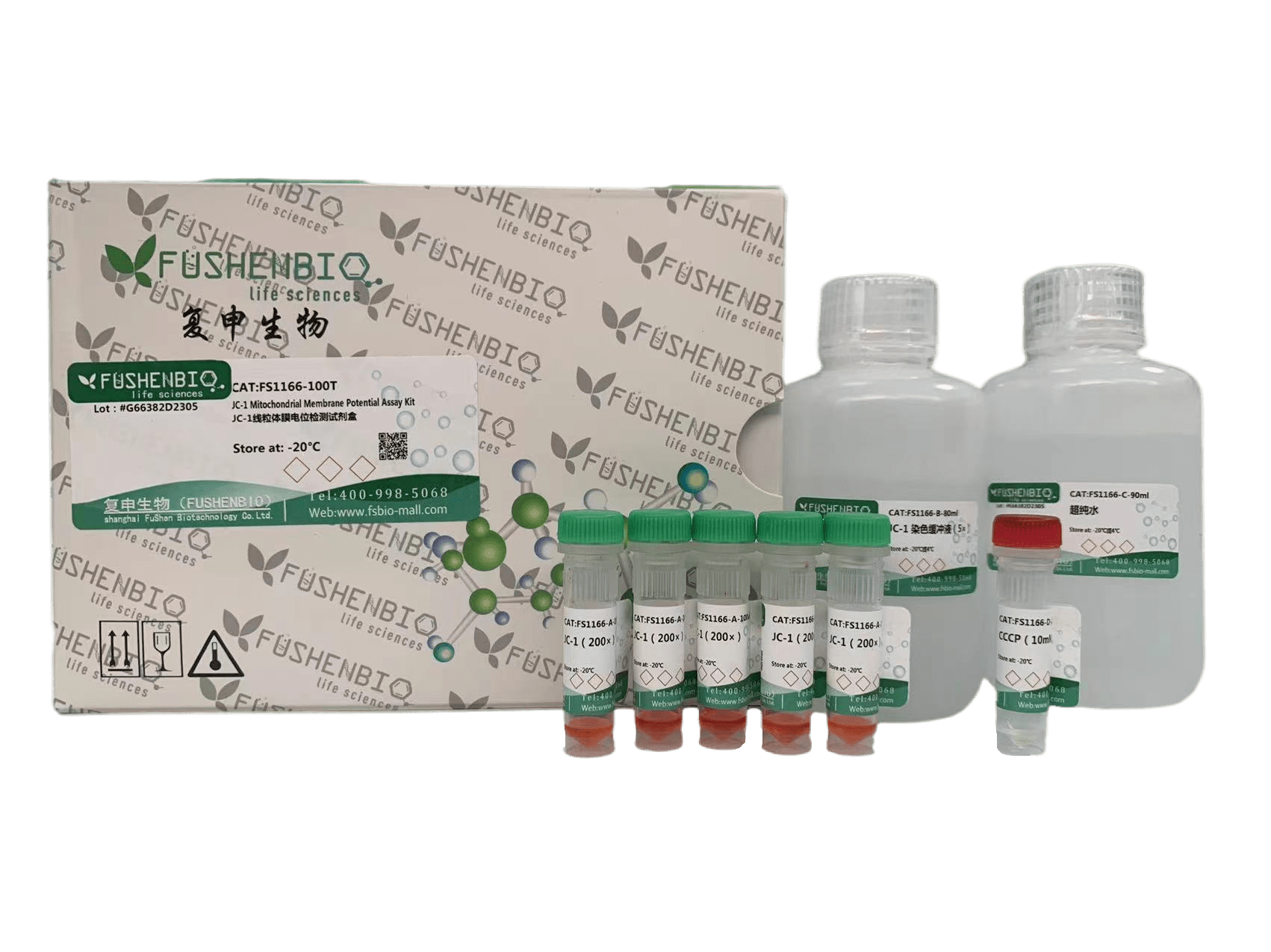 JC-1 線粒體膜電位檢測試劑盒(JC-1 Mitochondrial Membrane Potential Assay Kit)是一種以JC-1為熒光探針,快速且靈敏的檢測細胞、組織或純化線粒體膜電位變化的試劑盒。因線粒體膜電位的下降是細胞凋亡早期的一個標(biāo)志性事件。因此本試劑盒可用于早期的細胞凋亡檢測。