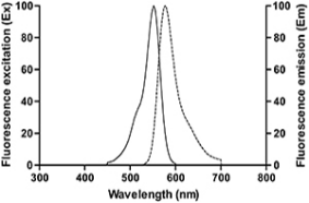 5-3. 用熒光酶標儀或熒光分光光度計檢測:混勻后直接用熒光分光光度計進行時間掃描(time scan),激發波長為550nm,發射波長為575nm。如果使用熒光酶標儀,可在軟件中把檢測對象設置為RhodamineTexas Red,即可以檢測TMRE。另外,也可以參考下面步驟6中的波長設置進行熒光檢測。
