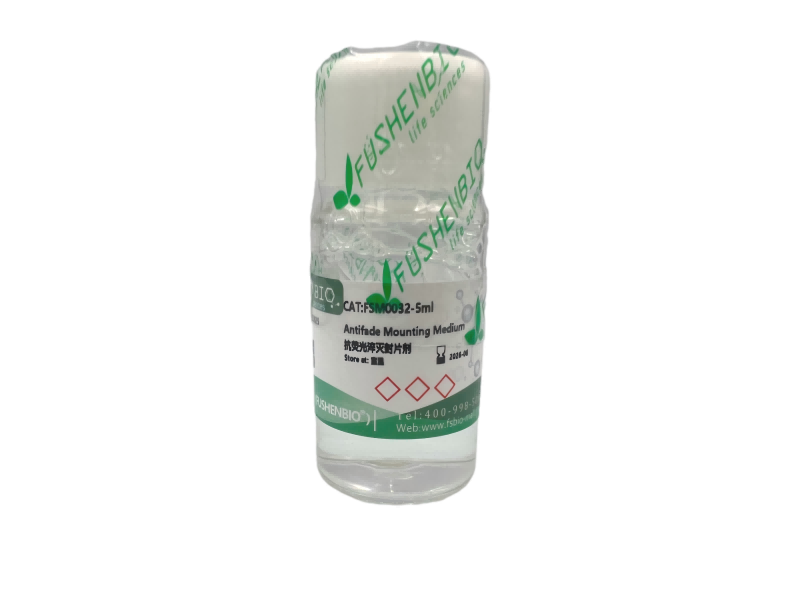 抗熒光淬滅封片劑(Antifade Mounting Medium)又稱抗熒光衰減封片(Fluorescence decay resistant Medium),是一種用于減緩熒光淬滅的封固劑。可以用于減緩各種常見熒光染料的熒光淬滅。按每個樣本需要50100μl封片劑計算,5ml可以用于至少50樣本的封片。